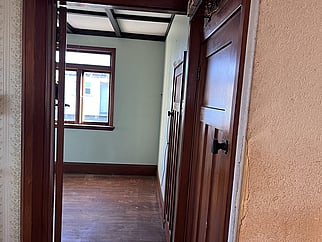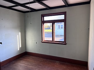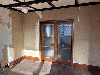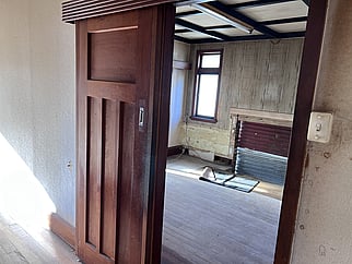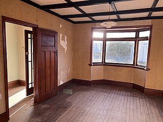 This villa is rich with original heritage features, including 2600mm original detail plaster ceilings, NZ native timber tongue and groove floors, wooden window joinery, and paneled doors with baker-light handles. The large lounge with a bay window opens to a grand dining room via double pocket three-pane glass doors. The kitchen and separate laundry are located at the back of the house, with ample room to rearrange and incorporate a butler's pantry and a second bathroom. A central hallway leads to three large bedrooms, two with built-in wardrobes, and a single bathroom with a shower over the bath.